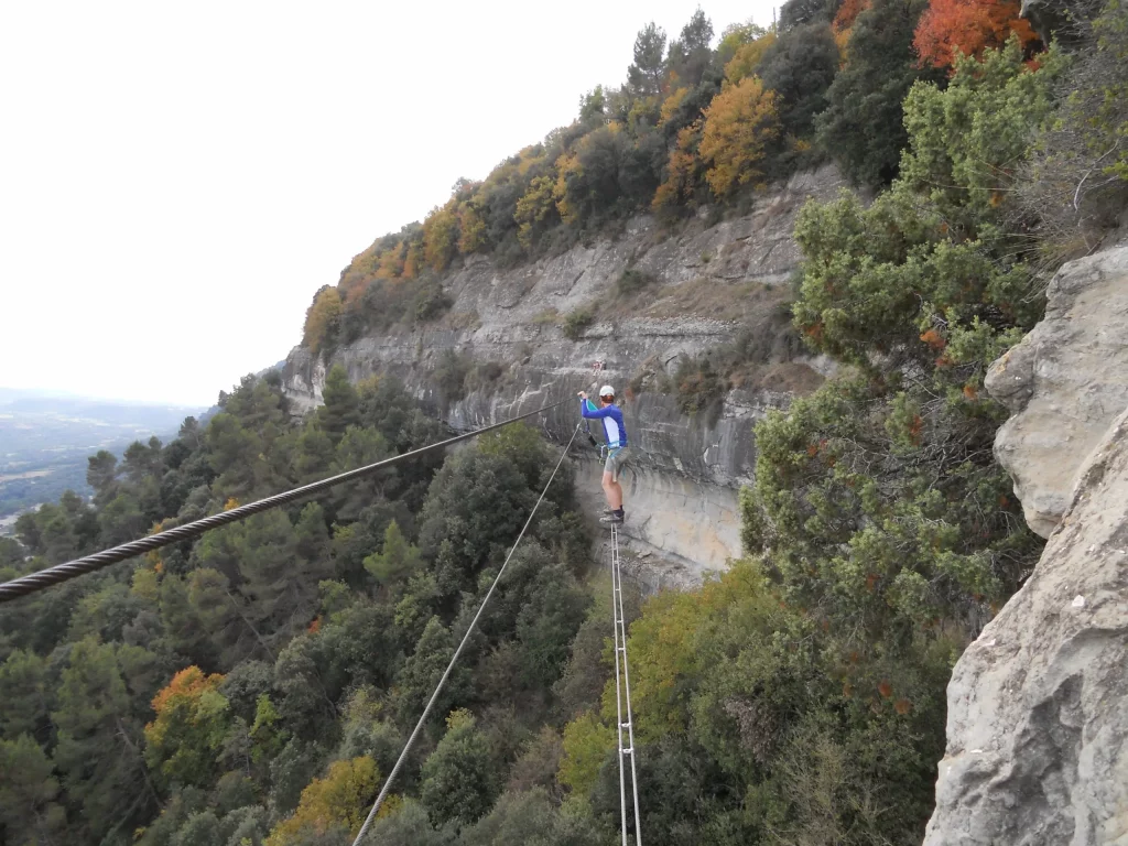 Al lado del pueblo de Centelles, en la comarca de Osona, encontramos esta popular vía ferrata que destaca por su largo puente tibetano de 70 metros! Ya solo por eso vale la pena venir a conocerla, pero todo su recorrido es original, y poco a poco y con una variedad de pasos destacable, iremos ganando altura hasta coronar el Puigsagordi si somos capaces de superar todos sus tramos!
